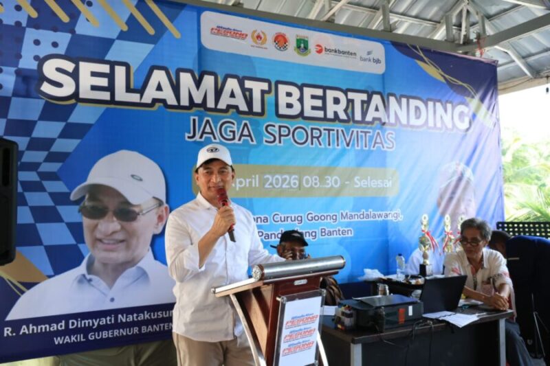 JENDELANUSANTARA.COM, Pandeglang – Wakil Gubernur (Wagub) Banten Achmad Dimyati Natakusumah membuka Turnamen Catur Perorangan “Dimyati Cup” yang digelar di kawasan wisata Pesona Curug Goong, Kecamatan Mandalawangi, Kabupaten Pandeglang, Sabtu (25/4/2026). Ia mengapresiasi atas terselenggaranya turnamen catur di lokasi wisata alam yang dinilainya memiliki suasana indah dan menenangkan.