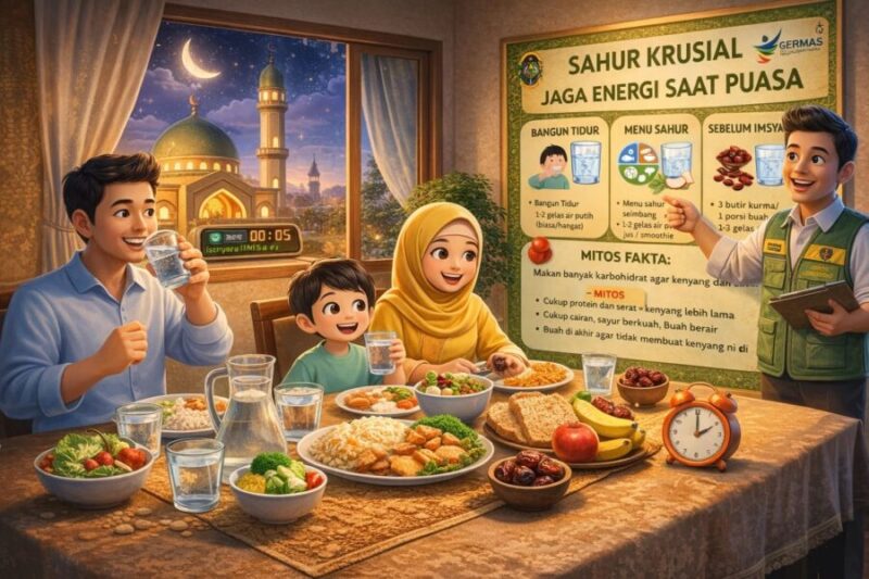 JENDELANUSANTARA.COM, YOGYAKARTA – Dinas Kesehatan Kota Yogyakarta menegaskan pentingnya sahur sebagai penentu kondisi tubuh selama menjalankan ibadah puasa. Melalui infografis edukasi yang dirilis pekan ini, Dinkes menyebut waktu sahur sebagai momen krusial untuk menjaga energi dan mencegah dehidrasi.