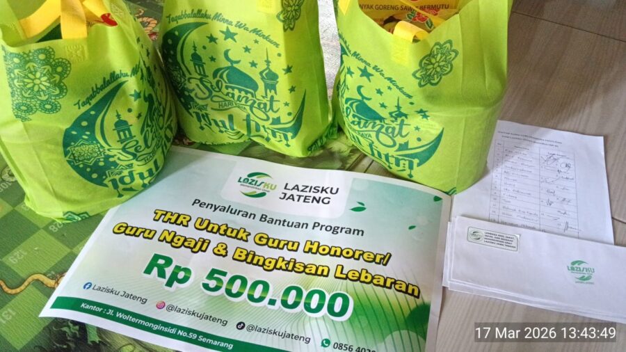 JENDELANUSANTARA.COM, Semarang — Dalam rangka menyambut Hari Raya Idul Fitri 1447 H, LAZISKU Pusat bekerja sama dengan LAZISKU Jawa Tengah menyalurkan bantuan Tunjangan Hari Raya (THR) dan bingkisan lebaran kepada para pendidik, Senin (16/3/2026).