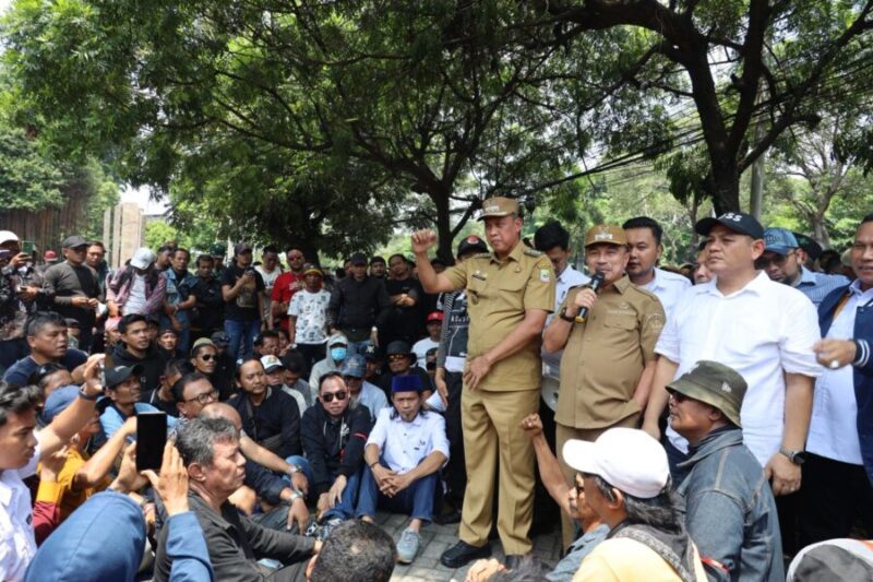 JENDELANUSANTARA.COM, Kota Bekasi – Wali Kota Bekasi, Tri Adhianto bersama Wakil Wali Kota Bekasi, Abdul Harris Bobihoe, didampingi jajaran Forum Komunikasi Pimpinan Daerah (Forkopimda) Kota Bekasi dan beberapa perwakilan Anggota DPRD Kota Bekasi, temui langsung para peserta aksi unjuk rasa di depan kantor DPRD Kota Bekasi, Senin siang (1/9).