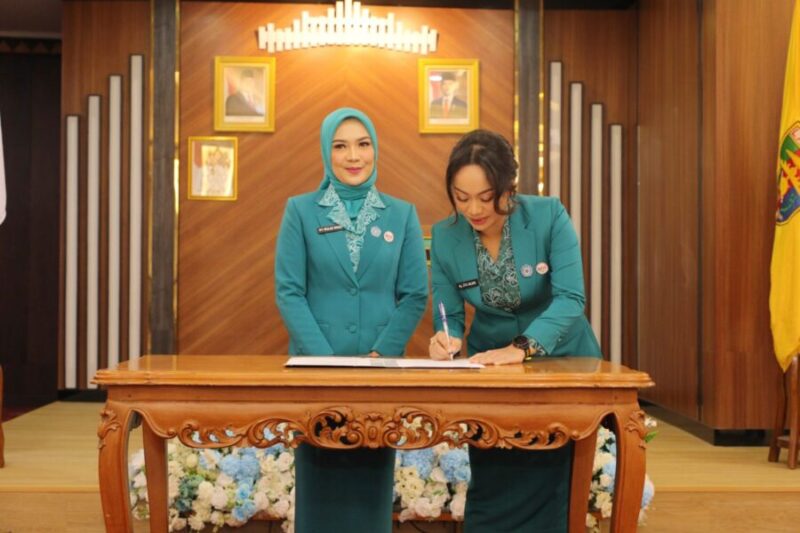 JENDELANUSANTARACOM, BANDAR LAMPUNG – Ketua TP-PKK Provinsi Lampung Ibu Purnama Wulan Sari Mirza melantik Ketua TP-PKK dan Ketua Tim Pembina Posyandu Kabupaten Lampung Selatan Ibu Zita Anjani Radityo Egi di Ruang Abung Balai Keratun, Komplek Dinas Kantor Gubernur, Bandarlampung, Rabu (26/2/2025).