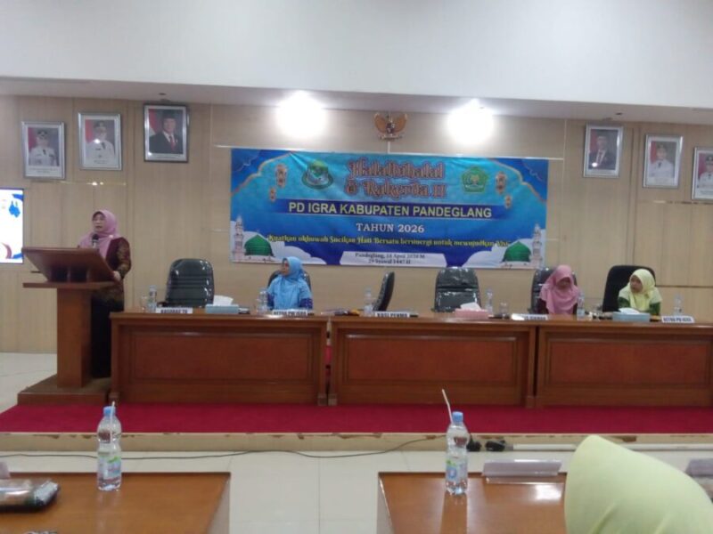 JENDELANUSANTARA.COM, Pandeglang – Pimpinan Daerah (PD) Ikatan Guru Raudhatul Athfal (IGRA) Kabupaten Pandeglang menggelar kegiatan halal bihalal yang dirangkaikan dengan Rapat Kerja Daerah (Rakerda) II sebagai ajang mempererat silaturahmi sekaligus konsolidasi organisasi. Kegiatan tersebut berlangsung di Gedung Sekretariat Daerah Kabupaten Pandeglang, Sabtu (18/4/2026).