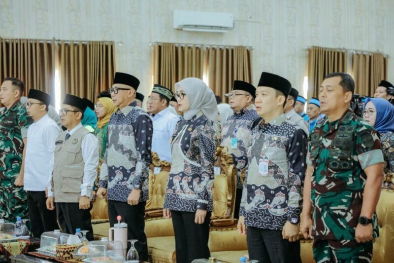 JENDELANUSANTARA.COM, BANDARLAMPUNG — Gubernur Lampung Rahmat Mirzani Djausal bersama Wakil Gubernur Lampung Jihan Nurlela melepas keberangkatan jemaah haji Kloter 7 asal Bandar Lampung di Gedung Madinatul Hujjaz Asrama Haji Indonesia Rajabasa, Bandar Lampung, Minggu (26/4/2026).