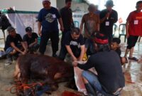 JENDELANUSANTARA.COM, Kota Bekasi – Wakil Wali Kota Bekasi Abdul Harris Bobihoe, menyembelih langsung sapi kurban, di halaman Masjid Al- Istiqomah, RW 014 Bekasi Jaya….