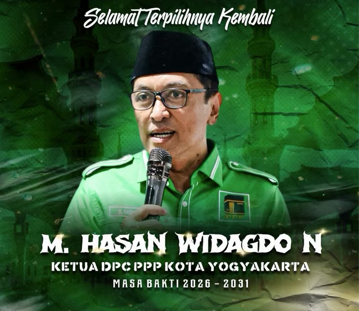 JENDELANUSANTARA.COM, Jogja – Ketua DPC PPP Kota Yogyakarta terpilih kembali periode 2026–2031, M. Hasan Widagdo N, menegaskan komitmennya untuk memperkuat posisi partai melalui soliditas total dan kerja elektoral yang terarah.