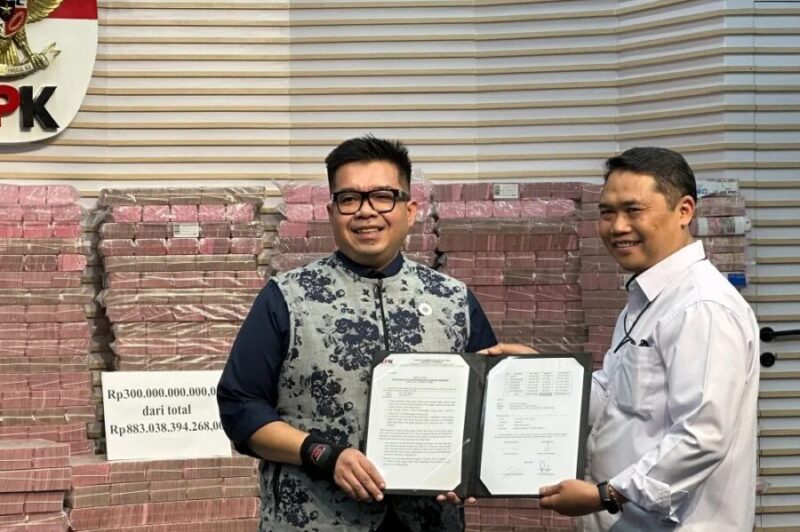 JENDELANUSANTARA.COM, Jakarta — Komisi Pemberantasan Korupsi (KPK) menyerahkan barang rampasan negara senilai Rp883,03 miliar serta enam unit efek kepada PT Taspen (Persero), Kamis (20/11/2025). Penyerahan ini merupakan bagian dari pemulihan kerugian negara dalam perkara korupsi investasi fiktif yang melibatkan mantan pejabat Taspen.