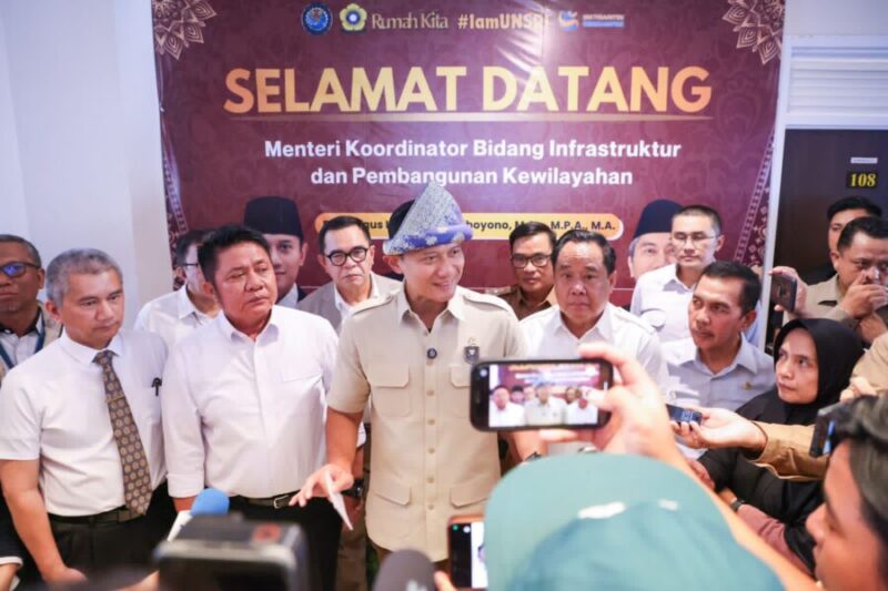 “Kita saat ini berada di rumah susun yang dibangun untuk hunian mahasiswa UNSRI, terutama bagi mahasiswa yang berasal dari luar Kota Palembang maupun dari luar negeri,” ujar Menko AHY.