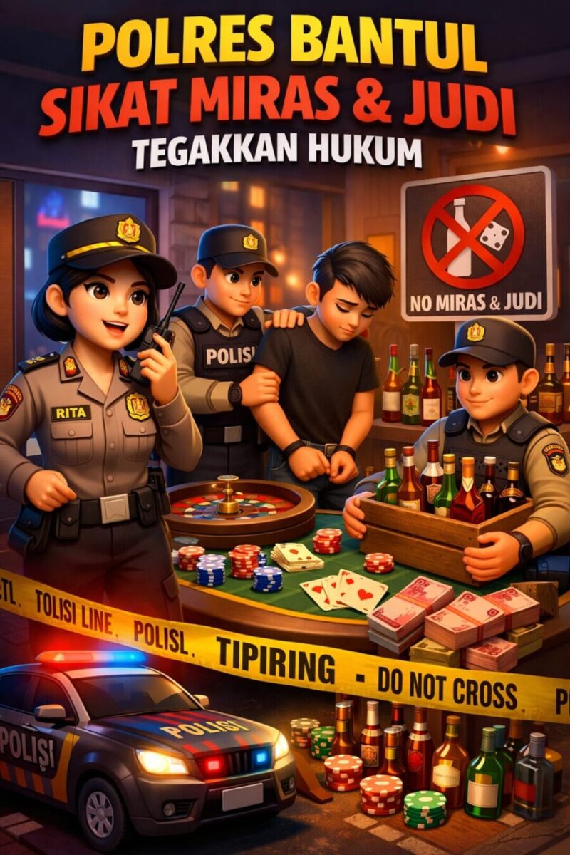 JENDELANUSANTARA.COM, Bantul – Anggota Polres Bantul menggencarkan Kegiatan Rutin Yang Ditingkatkan dengan menindak tegas penjual miras dan praktik perjudian, Jumat (20/2/2026) malam.