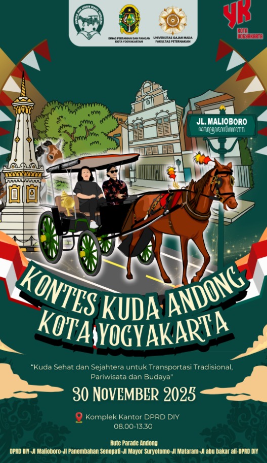 “Kontes ini bukan hanya pertunjukan budaya, tetapi bentuk komitmen menjaga keberlanjutan ikon wisata Jogja,” kata Sri Panggarti, Kepala Bidang Perikanan dan Kehewanan DPP Kota Jogja, Jumat (28/11/2025).
