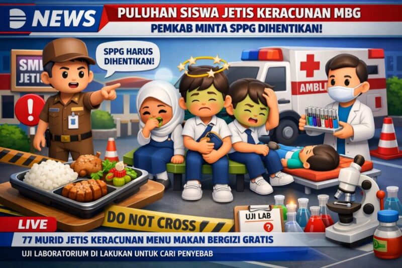 JENDELANUSANTARA.COM, Bantul – Puluhan siswa di Kapanewon Jetis, Kabupaten Bantul, mengalami gejala keracunan usai menyantap menu Makan Bergizi Gratis (MBG), Senin (13/4/2026).