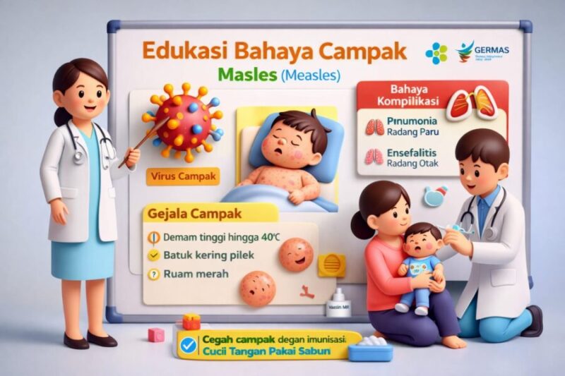 Dalam informasi tersebut dijelaskan bahwa campak merupakan penyakit infeksi yang disebabkan oleh virus campak atau morbillivirus. Penyakit ini bersifat sangat menular dan umumnya menyerang anak-anak, terutama mereka yang belum mendapatkan imunisasi.