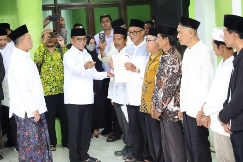 Penyerahan sertipikat tanah wakaf ini bertujuan memastikan perlindungan hukum terhadap aset keagamaan sekaligus mendorong optimalisasi pemanfaatannya bagi kepentingan pendidikan dan kegiatan sosial kemasyarakatan.