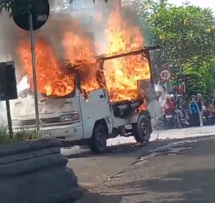 JENDELANUSANTARA.COM, Jogja – Sebuah mobil pick up yang digunakan untuk berjualan tahu bulat terbakar di Jalan Kerto, Muja Muju, Umbulharjo, Kota Yogyakarta, Jumat (17/4/2026) sekitar pukul 15.00 WIB.