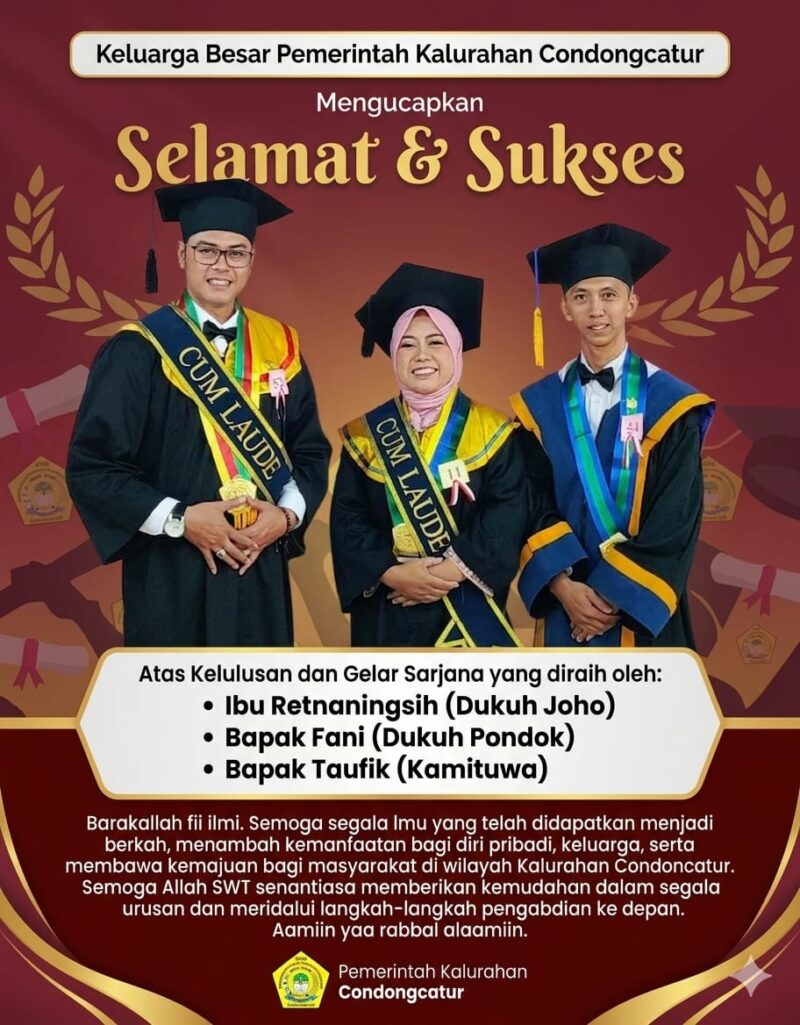 Mereka adalah Kamituwa, Dukuh Joho, dan Dukuh Pondok yang sukses menuntaskan studi lanjut dan meraih gelar akademik.