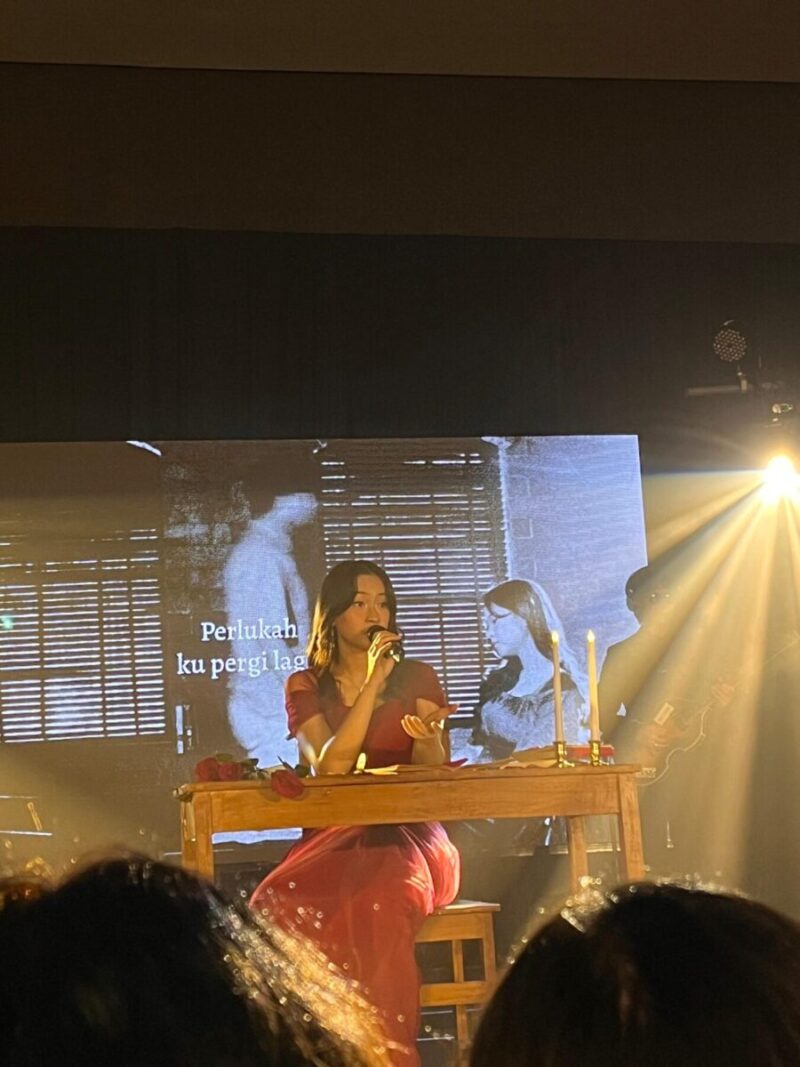 “Aku menulis tanpa menyaring emosi. Semua aku biarkan jujur, karena itu yang paling manusiawi,” kata Raissa di atas panggung.