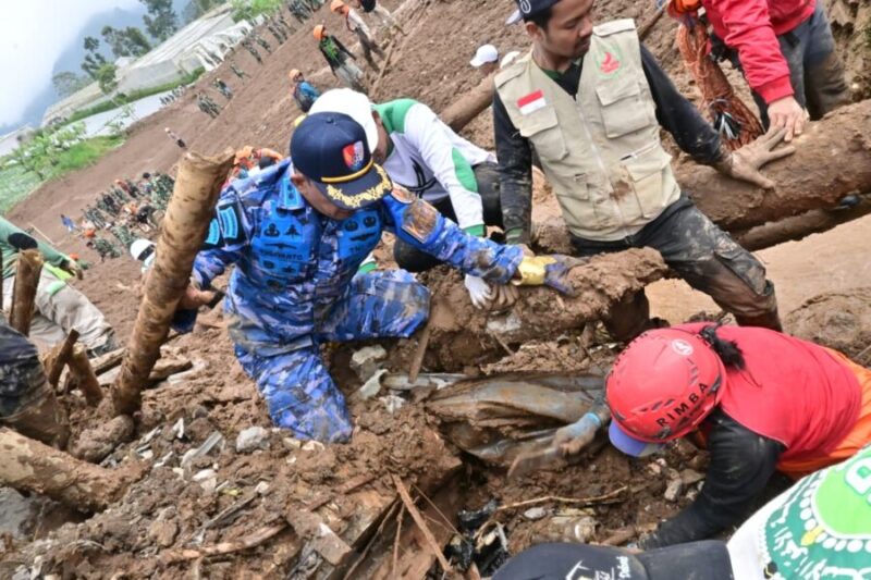 Di lokasi kejadian, personel Lanud Husein Sastranegara bersama para relawan bahu-membahu melakukan pembersihan material longsor serta membantu proses evakuasi dan penanganan wilayah terdampak. Kehadiran unsur TNI AU diharapkan dapat mempercepat pemulihan kondisi dan meringankan beban warga.