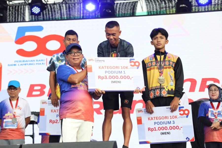 Hadiah Bank Lampung Run 2025 berjumlah 59 unit bernilai ratusan juta rupiah terdiri dari Sepeda Motor, Kulkas, Smart TV 50”, Smartphone, Tab, Emas Antam, Sport Watch dll.