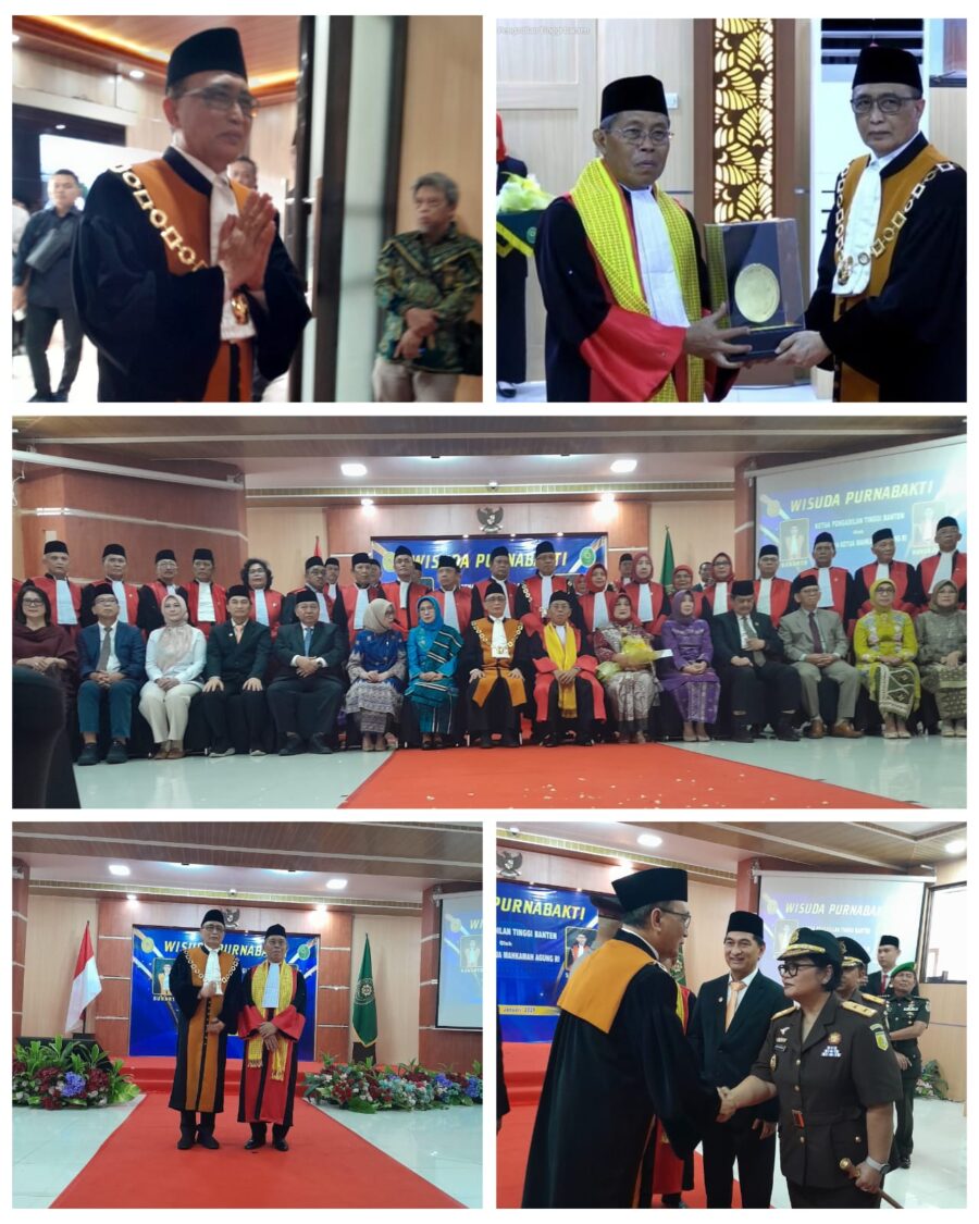 JENDELANUSANTARA.COM, Kota Serang – Ketua Mahkamah Agung Republik Indonesia, Prof. Dr. Sunarto, S.H., M.H., melepas purnabakti Ketua Pengadilan Tinggi Banten, Dr. Suharjono, S.H., M.Hum., dalam prosesi wisuda purnabakti yang berlangsung di Pengadilan Tinggi Banten, Serang, Jumat (30/1/2026).